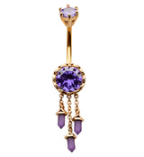 Gold PVD Amethyst Crystal Dangle Stainless Steel Belly Button Ring