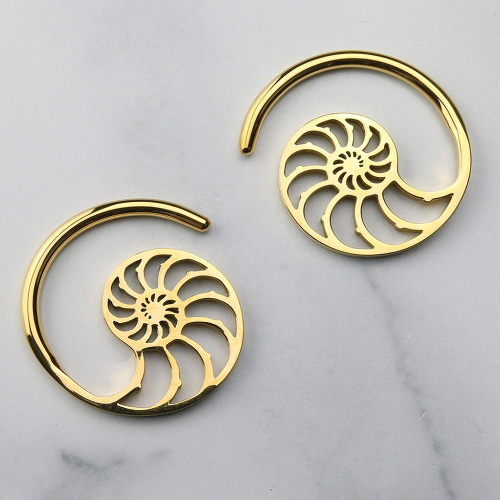 Sold in pairs (2pc) Weight: 15 grams each Size: 48mm x 42mm 6G (6.5mm) or bigger to wear Gold PVD on 316L stainless steel For healed piercings