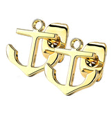 Stud earrings with an anchor design. Made from gold pvd on 316L stainless steel. Size is 20G. Top size is about 10mm x 10mm. Butterfly backs. Sold in pairs (2 pieces).