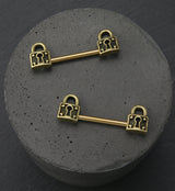 Gold PVD Antique Lock Stainless Steel Nipple Barbell