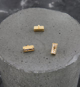 Internally threaded top piece that has a long baguette clear cz gem. Made from gold pvd on ASTM F-136 titanium. Measures about 6mm x 3mm. Size is 16G with M0.9 threading. Sold individually (top piece only).