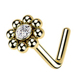 Gold PVD Beaded Flower Clear CZ L Bend Nose Stud