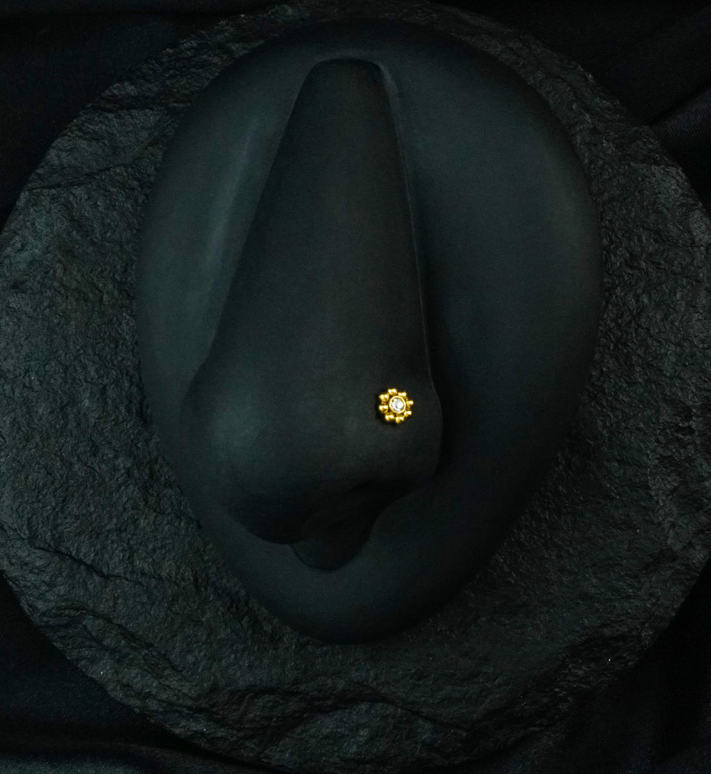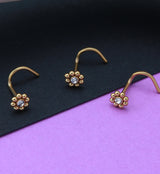 Gold PVD Beaded Flower CZ Nose Screw Ring