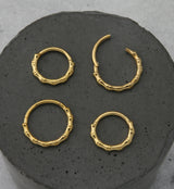 Hinged segment ring made from gold pvd on 316L stainless steel with a bracketed design. Size is 18G. Choose your inner diameter size: 5/16" (8mm), 3/8" (10mm). The hinged design makes this piece easy to insert and remove. Sold individually (1pc).