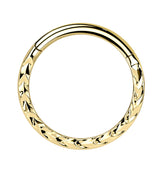 Pretty hinged segment ring made from gold PVD on 316L stainless steel with a braided design. Hinged for easy opening and closing. Size 16G. Choose diameter size: 5/16" (8mm), 3/8" (10mm). For healed piercings.