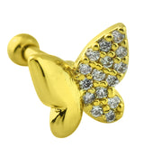 Gold PVD Butterfly Half Pave Clear CZ Cartilage Barbell