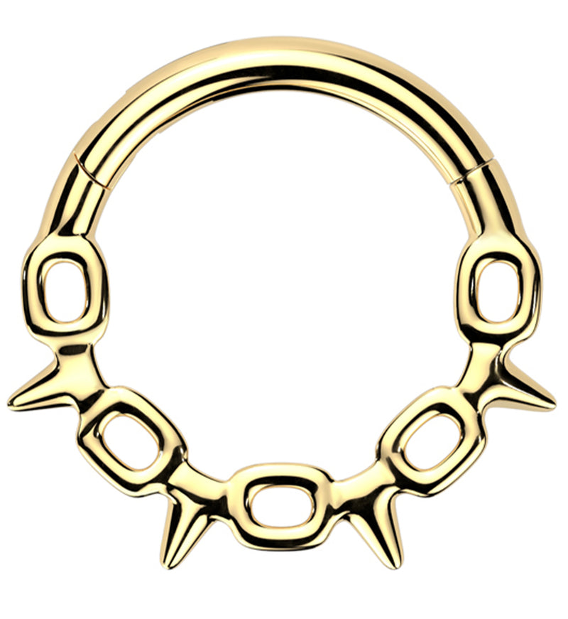 Gold PVD Chain Link Spikes Stainless Steel Hinged Segment Ring