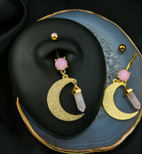 Gold PVD Crescent Moon Rose Quartz Dangle Stainless Steel Belly Button Ring