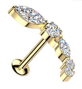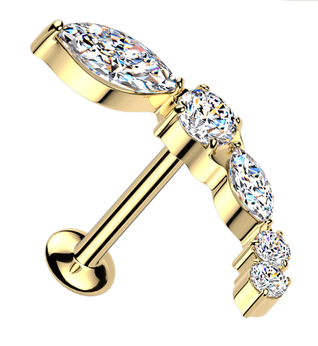 Gold PVD Curve Marquise Clear CZ Threadless Titanium Labret