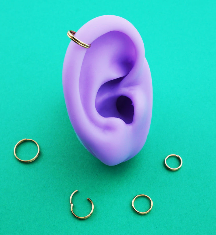Hinged segment ring made from gold pvd on 316L stainless steel with a hoop design that has a double row along the bottom. Available in size 20G with multiple diamter sizes to choose from: 1/4" (6mm), 9/32" (7mm), 5/16" (8mm), 3/8" (10mm). The hinged design makes this piece easy to insert and remove. Sold individually (1pc).