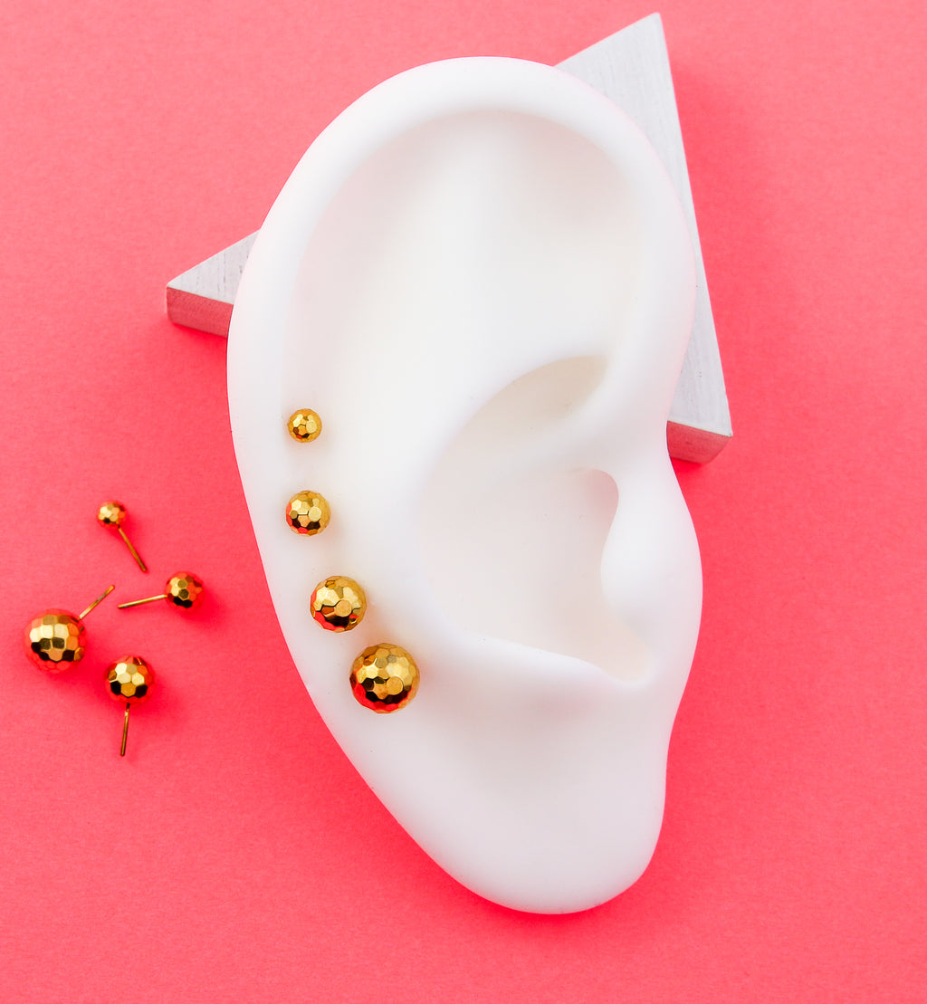 Designed with gold pvd on ASTM F-136 titanium, this Faceted Ball Titanium Threadless Top offers a golden and stylish addition to any piercing. The ball piece has a multi-faceted design for added shimmer. Available in 4 different ball sizes: 3mm, 4mm, 5mm, and 6mm. this individual top uses a threadless design and fits most threadless posts for a secure and comfortable fit. Elevate your piercing style with this top!