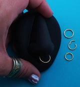 Hinged segment ring made from gold pvd on 316L stainless steel with a hoop design that has a side-facing, faceted design along the bottom. Size is 16G with an inner diameter size of either 5/16" (8mm) or 3/8" (10mm). The hinged design makes this piece easy to insert and remove. Sold individually (1pc).