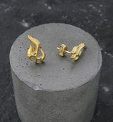 Cool earring posts complete with butterfly backs and paired with a flame shaped top. Size is 20G with a 1/4" (6mm) length post. Top size: 16mm x 9mm. Constructed from gold pvd on 316L stainless steel. Sold in pairs (2pcs).