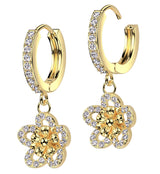 Gold PVD Flower CZ Stainless Steel Hoop Earrings