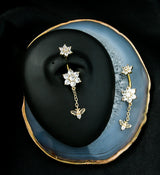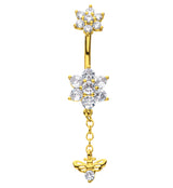 Gold PVD Flower Dangle Bee Clear CZ Stainless Steel Belly Button Ring