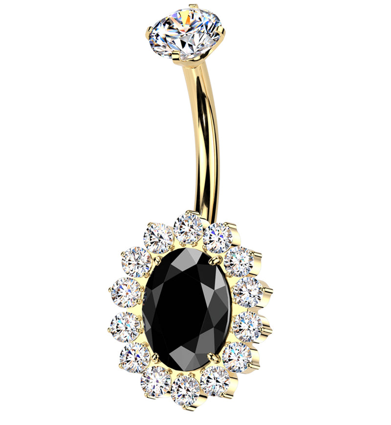 Gold PVD Gild Oval Black CZ Titanium Internally Threaded Belly Button Ring
