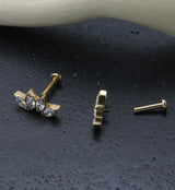 Gold PVD Half Crown CZ Gem Titanium Labret Post
