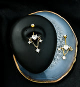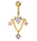 Gold PVD Heart Triple Clear CZ Dangle Chain Stainless Steel Belly Button Ring