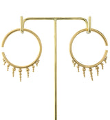 Lightweight earrings/hangers with an icicle bead hoop design. Size is 8G (3mm). Measures at 55mm x 42mm. Weight is about 21 grams each. NOTE: these are handmade so size and weight is approximate. Made from gold pvd on 316L stainless steel. Sold in pairs (2pc). For healed piercings/lobes.