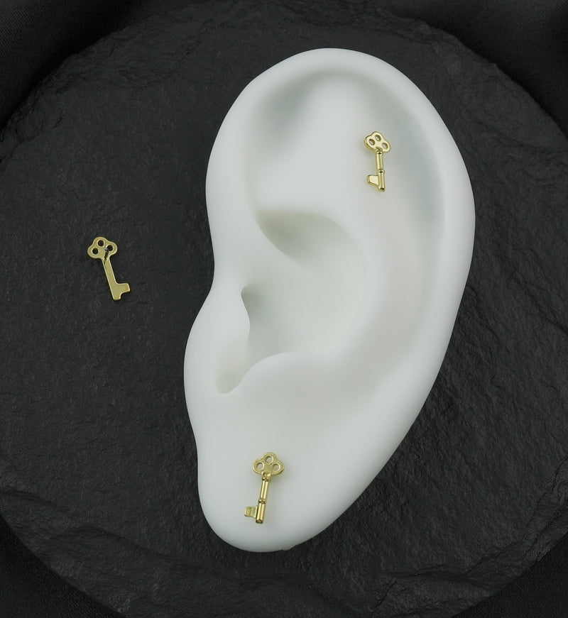 Made from strong ASTM F136 titanium with gold pvd plating, this fun threadless top piece measures 11mm x 4mm and can fit most threadless posts. It is great for cartilage or tragus piercings! Sold individually.