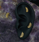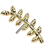 Made from gold pvd on ASTM F136 titanium, this lightweight top piece has a fern leaf design that is sure to add some nature vibes to your piercing. Measuring 12mm by 5mm, this 25G pin top fits comfortably into most threadless posts. Sold individually (top only).
