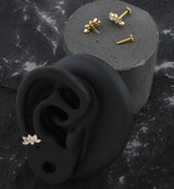 Gold PVD Lotus Flower Clear CZ Threadless Titanium Flower Back Labret
