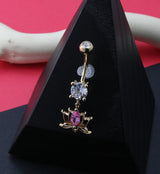 Gold PVD Lotus Flower Pink CZ Belly Button Ring