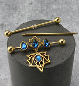 Gold PVD Lotus Spider Blue CZ Industrial Barbell