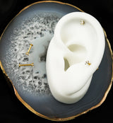 This 16G internally threaded labret has a 4mm x 2mm clear marquise shaped cz gem. It also features a disc size of 3mm. Recommended for healed piercings. You can pick from two different wearable lengths: 1/4" (6mm) or 5/16" (8mm). It is made from gold pvd on ASTM F-136 titanium. Sold Individually (1 pc).