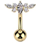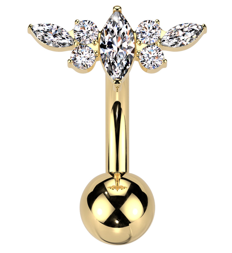 Gold PVD Marquise Half Crown Clear CZ Titanium Threadless Belly Button Ring