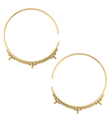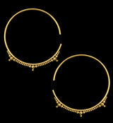 Lightweight earrings/hangers with a mini beaded hoop design. Size is 12G (2mm). Measures at 70mm x 65mm. Weight is about 7 grams each. NOTE: these are handmade so size and weight is approximate. Made from gold pvd on 316L stainless steel. Sold in pairs (2pc). For healed piercings/lobes.
