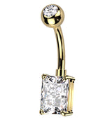 Gold PVD Oblong Prong Clear CZ Titanium Belly Button Ring