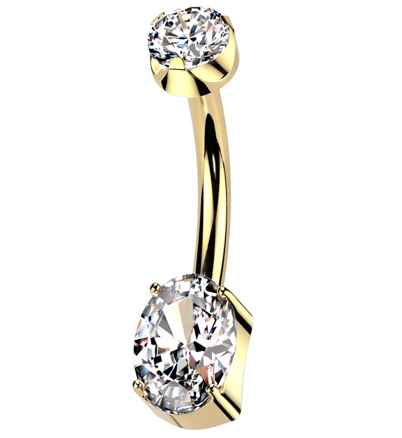 Gold PVD Oval Prong Clear CZ Titanium Internally Threaded Belly Button Ring