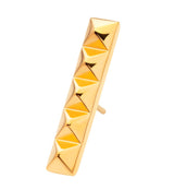Studded threadless top piece that has a rectangular design consisting of five pyramid points. Made from gold pvd on ASTM F-136 titanium. Measures about 13mm x 2.5mm. Fits most threadless posts. Sold individually (top piece only).