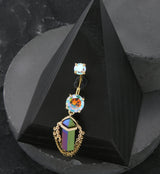 Gold PVD Rainbow Crystal Multi Dangle Chain Stainless Steel Belly Button Ring