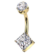 Gold PVD Rhombus Clear CZ Titanium Threadless Belly Button Ring