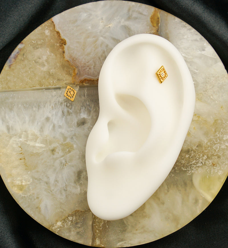 Gold PVD Rhombus Cutout Clear CZ Threadless Titanium Top