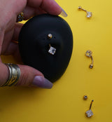 Gold PVD Rhombus Prong Clear CZ Titanium Belly Button Ring