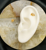 This golden, threadless top piece has a lotus flower cutout design that has a centered, marquise-shaped, clear cz gem. Pin size is 25G so it fits most threadless tops. The top size is about 10mm x 7mm. It is made from gold pvd on ASTM F-136 titanium. Effortless to put in and remove. Sold Individually (top only).