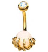 Gold PVD Skeletal Palm White Opalite Belly Button Ring