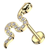 Gold PVD Snake Clear CZ Threadless Titanium Labret