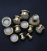 Gold PVD Stainless Steel White Mother of Pearl Plugs