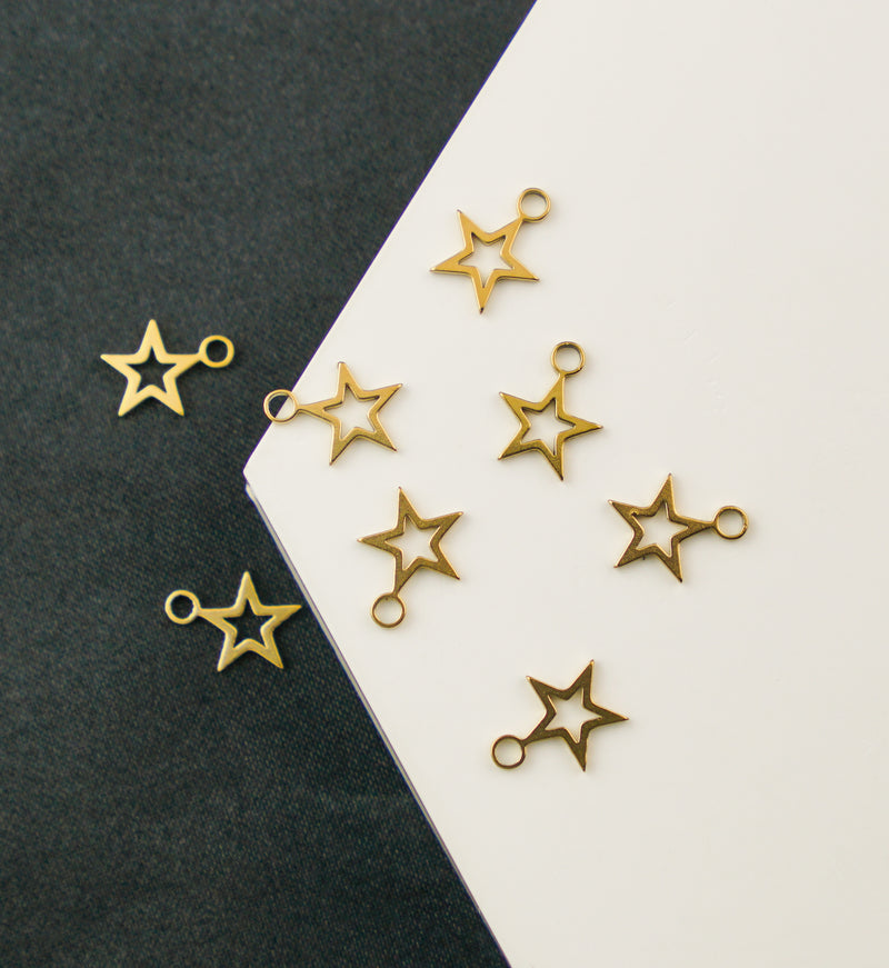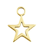 Golden, mini star outline charm that has an O-ring on the end to hang from a cartilage/tragus/septum hoop ring. Made from gold pvd on 316L stainless steel. Measures about 8mm x 6mm (including "O" ring). Sold individually (1 pc).