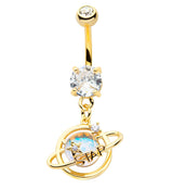 Gold PVD Star Planet Rainbow CZ Dangle Stainless Steel Belly Button Ring