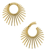 Experience a new style of ear stretching with our Gold PVD Sunburst Hinged Ear Weights. Made from gold pvd on 316L stainless steel and handmade, each ear weight measures 40mm x 42mm and weighs 14 grams. Designed with a hinged closure, each pair of ear weights requires a minimum of 6G (4mm) to be worn. Transform your look and experience a whole new level of ear stretching with our Sunburst Hinged Ear Weights. For healed lobes.