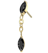 Gold PVD Teardrop Chain Link Dangle Black CZ Titanium Threadless Top