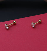 Golden barbell with a clear cubic zirconia gem on top. Externally threaded. Comes in either 18G or 16G with an inner length of 1/4" (6mm). 4mm gem size. Sold individually (1 pc). For healed piercings.