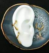 Gold PVD Titanium Teardrop Dangle Hinged Hoop Huggie Earrings