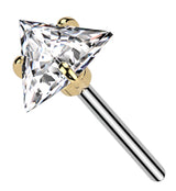 Gold PVD Triangle Clear CZ Titanium Threadless Top