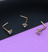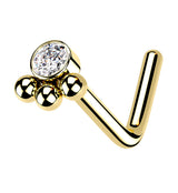 Gold PVD Triple Beaded Clear CZ L Bend Nose Stud